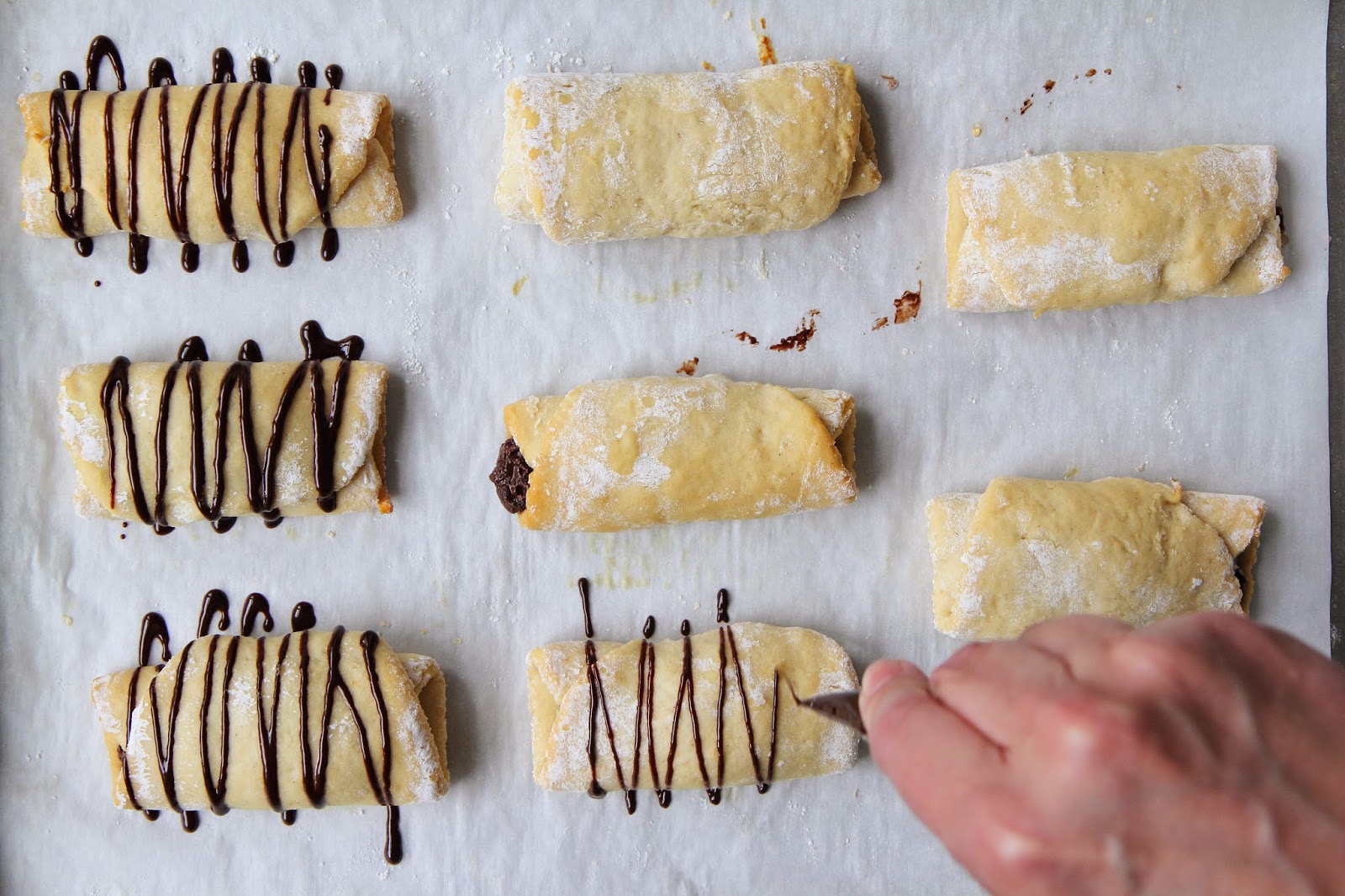 14. Let the croissants cool completely, and then decorate with chocolate glaze: